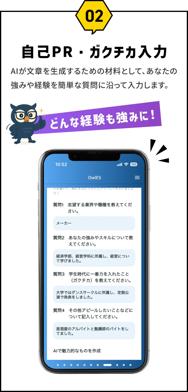 オウルアイ しんどい ES づくり、今日で終わり。勝てるESを、AIが秒速で実現。完全無料 ※ 作業時間90%短縮 新卒・就活生特化 ※ 現在ご利用いただける機能はすべて無料です。将来的に一部有料プランを追加予定です。